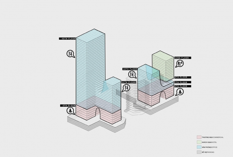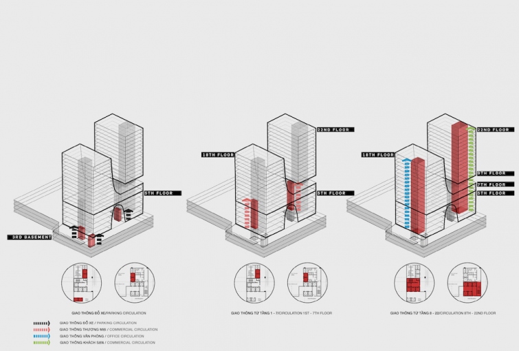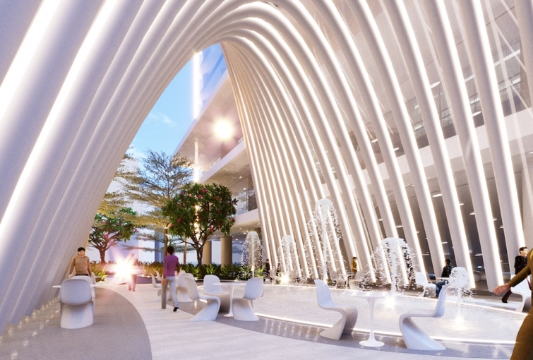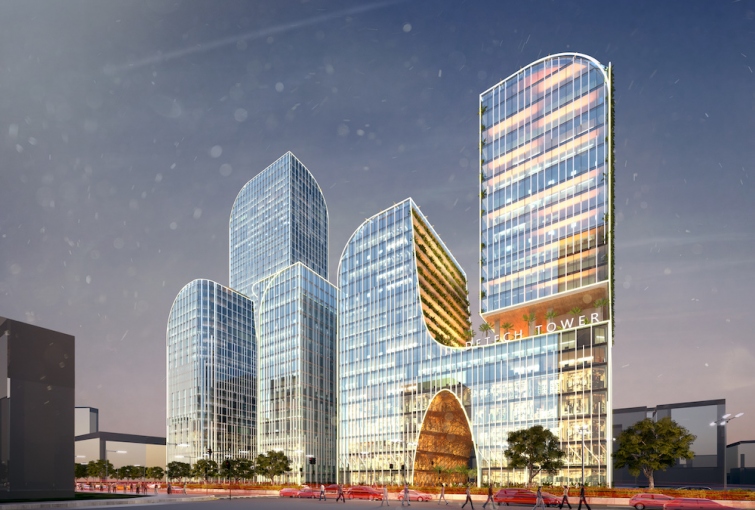 The headquarters of Detech comprises a group of connected towers for this family business. It includes the original building and is located in a thriving up-and-coming part of Hanoi, the My Dinh district.