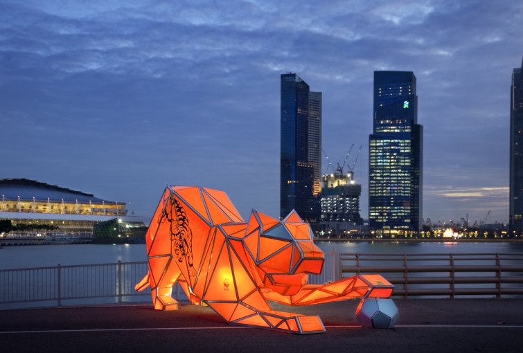 The tigers are inspired by “zhezhi”, a Chinese term for paper folding, more popularly known by its Japanese name “origami”. Traditional Chinese lantern makers in Sichuan province, where lantern making has been taking place for over 800 years, and local artisans were consulted. The Chinese or Lunar New Year is the most important Chinese holiday and starts with a Lantern Festival. The Chinese lunar astrological sign was the metal tiger in 2010.