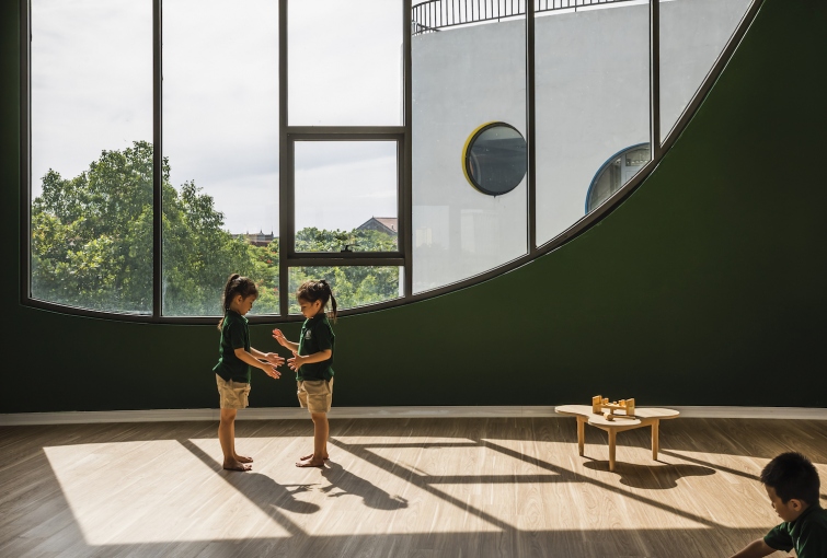 The design language - organic shapes, simple architectural lines, primary colours, different facades/windows coded by age – is all about growth. It’s child-friendly without being childish.