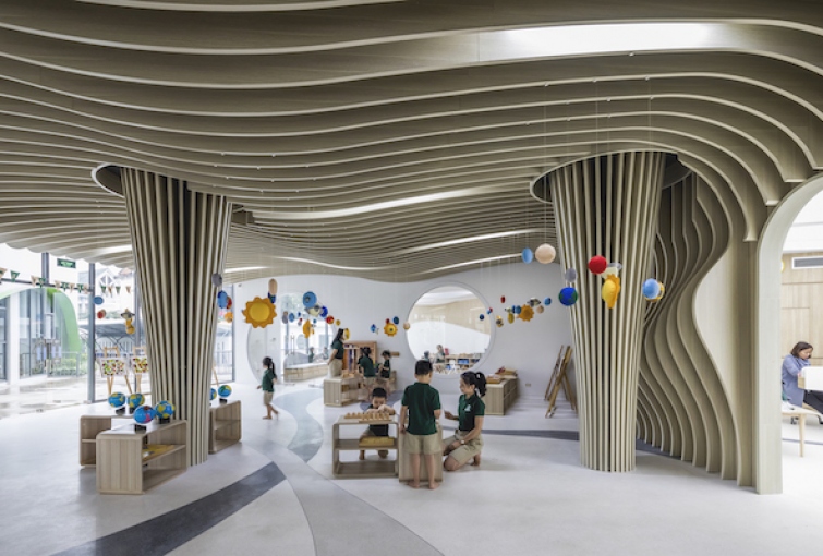 The design of a kindergarten features spaces encouraging curiosity, activity-based learning and interaction with nature for the next generation of Vietnamese children.