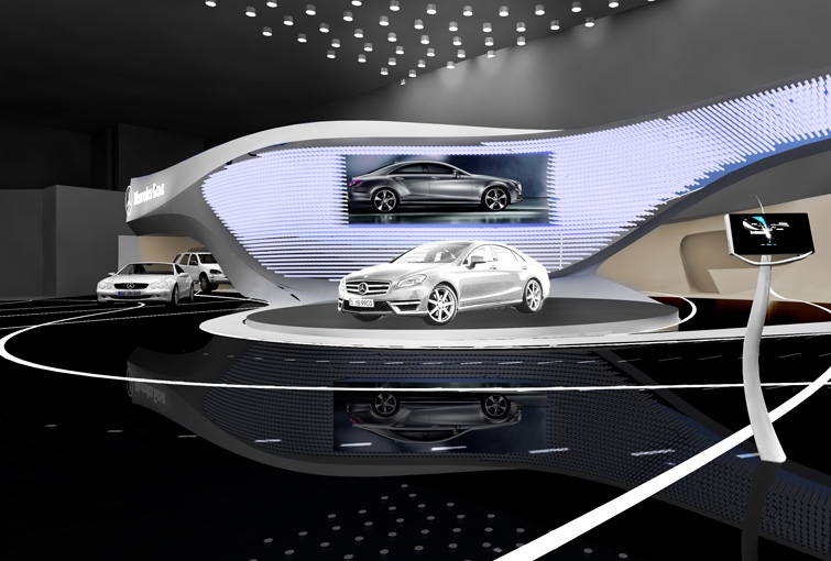 The stand concept reflects the innovative approach of Mercedes-Benz to automotive engineering.
