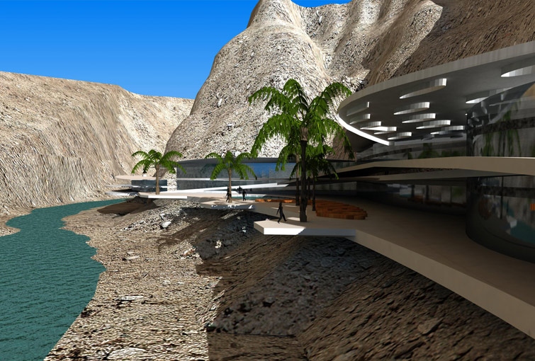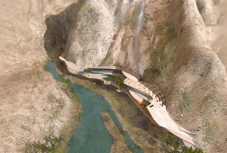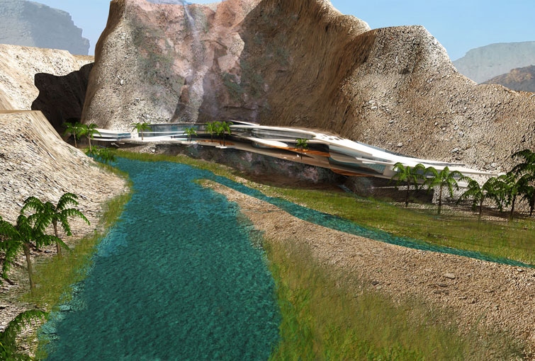 Plans for new resort villas in Oman were based on four different concepts: Desert, Mountain, Wadi and Bay. Villas were positioned into the side of a mountain or deep in valleys offering amazing views.