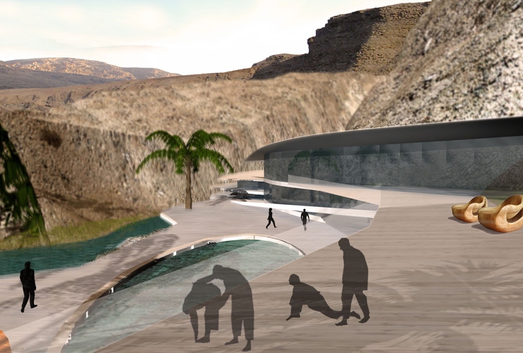 The Desert concept sees different interior atmospheres such as sand-curved canyons and over-shaded corridors. A wide central open-air area under the stars is the theatre for celebrations and a place for sharing traditions. An exclusive view of the vast expanse of surrounding dunes is accessible from each private and luxurious villa.